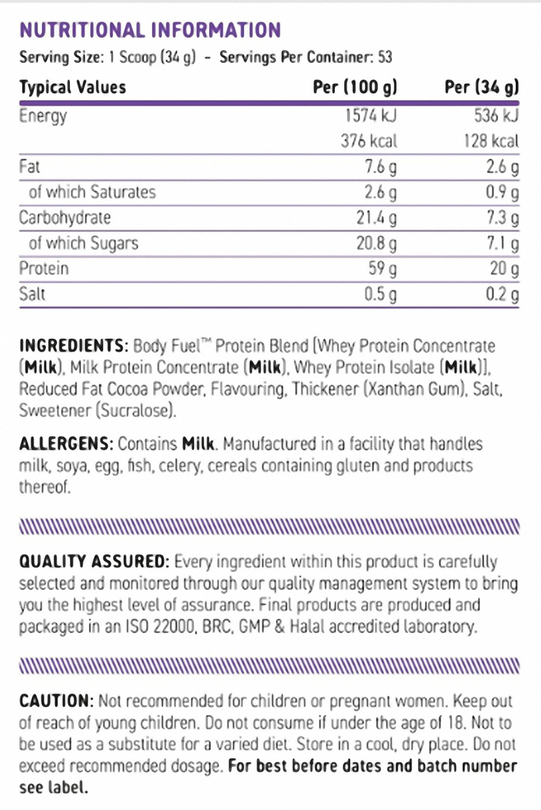Applied Nutrition BODYFUEL™ Whey Protein 1.8kg Double Çikolata Aromalı